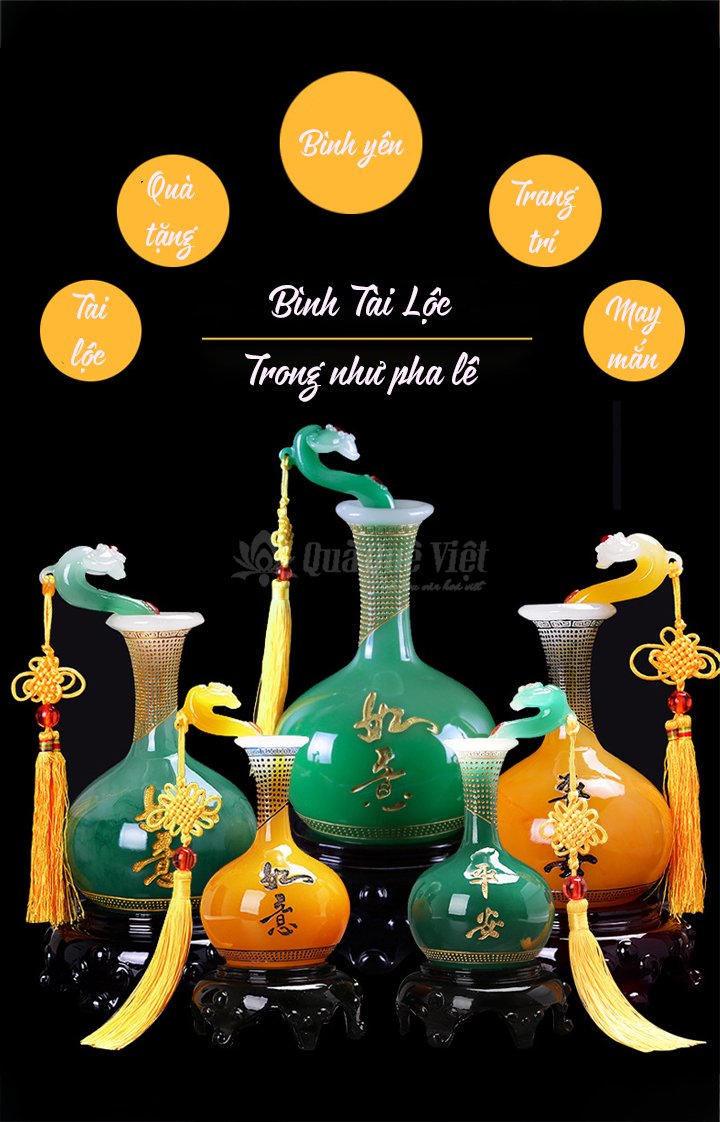 Nếu bạn đang muốn thay đổi phong thủy gia đình, tạo nguồn sinh khí tốt và thu hút tài lộc may mắn thì Bình tài lộc chính là lựa chọn tốt nhất. Để có thể sở hữu vật phẩm chính hãng với mức giá cạnh tranh bạn hãy đến với Quà Quê Việt. Tại đây cung cấp rất nhiều vật phẩm Bình tài lộc với đa dạng kích thước, màu sắc nên bạn có thể thoải mái lựa chọn theo sở thích và nội thất của không gian nhà. Về mức giá vật phẩm này bạn cũng có thể yên tâm, bởi shop nhập tận xưởng nên luôn có giá tốt nhất thị trường.
